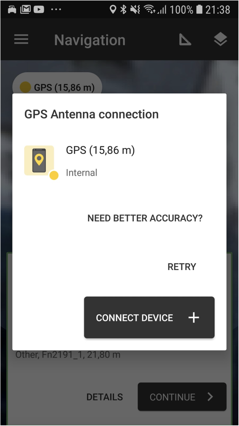 Connection to the new generation FieldBee L2 receiver is available now in this app version. The antenna can be connected by selecting from the available devices that appeared on the screen or added manually by entering its IP address.
